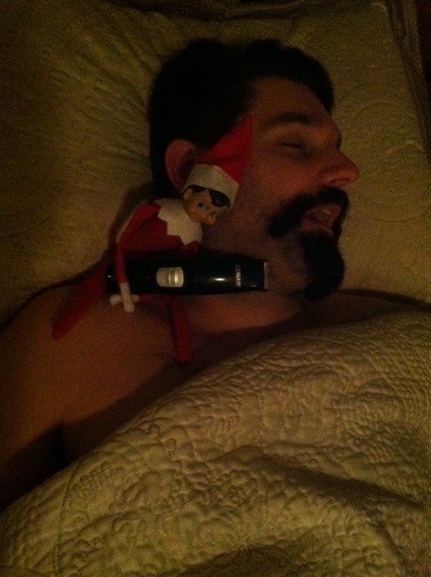 What’s that? Oh you don’t know? You don’t have kids or have never walked the aisles of your local Target nor Barnes & Nobles. Let me fill you in… this “Elf on the shelf” comes in a fabulous box with a story book accompanying him or her. He comes with a variety of hair and eye color options these days, so you can select the perfect little elf to keep your adorable munchkins in line before Christmas. For all intents and purposes he is just a Christmas tool, used to enforce Santa’s Naughty or Nice list. He watches your kids and then when they fall asleep he heads back to the North Pole each night to report on the daily activities. He comes back and then positions himself in a new spot around the house. The fun is in finding what he has done or where he is hiding the next day.